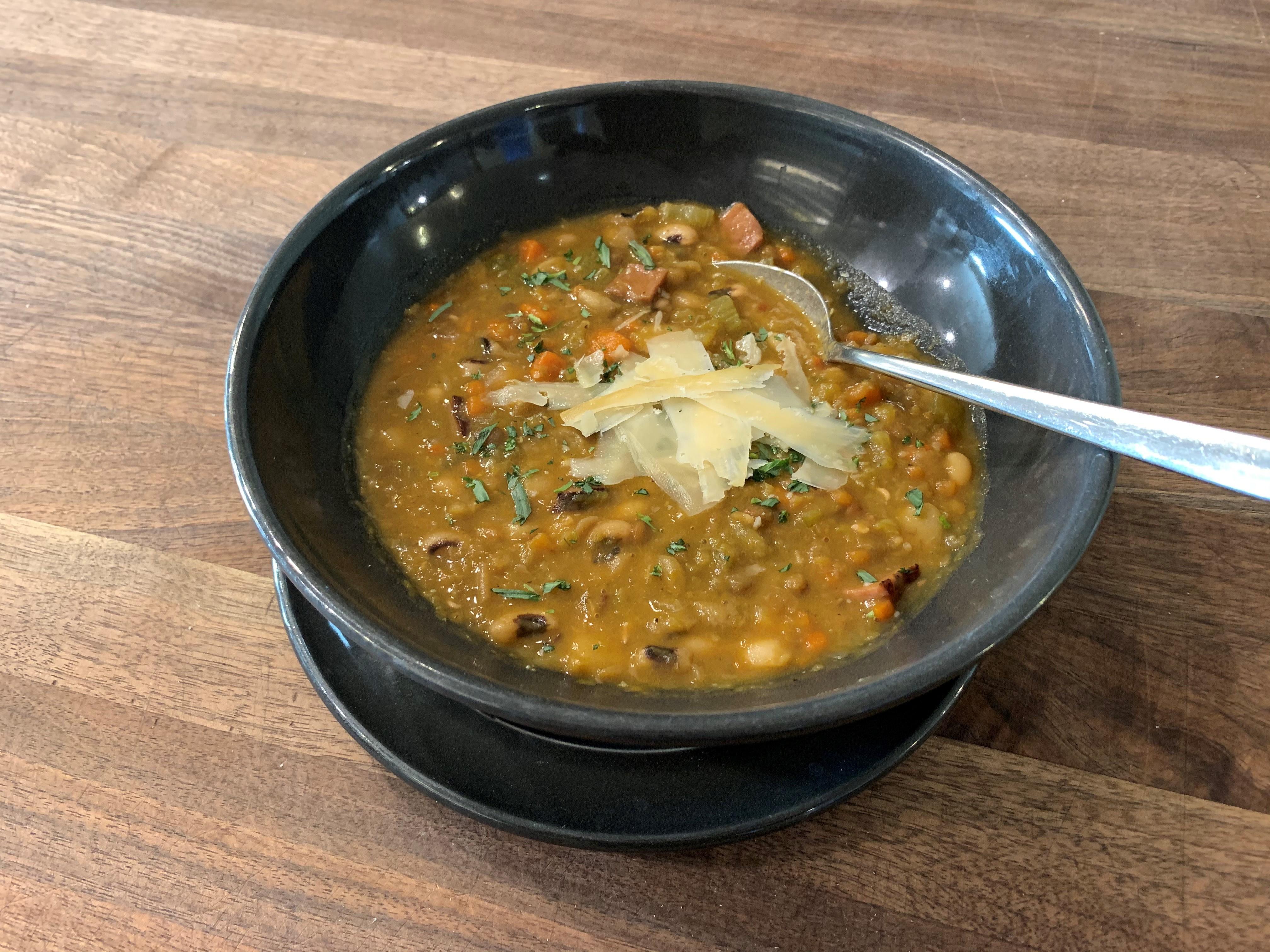 - Once the soup comes to a boil, reduce to a simmer and let it cook for about 45 minutes, until the beans are soft.