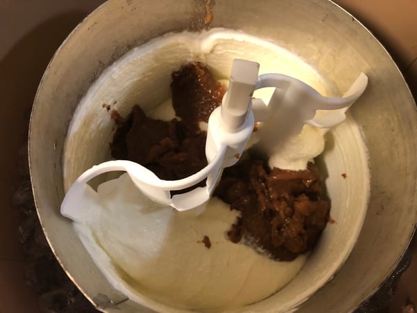 - When the ice cream is almost done add the pureed figs and allow it to mix through.