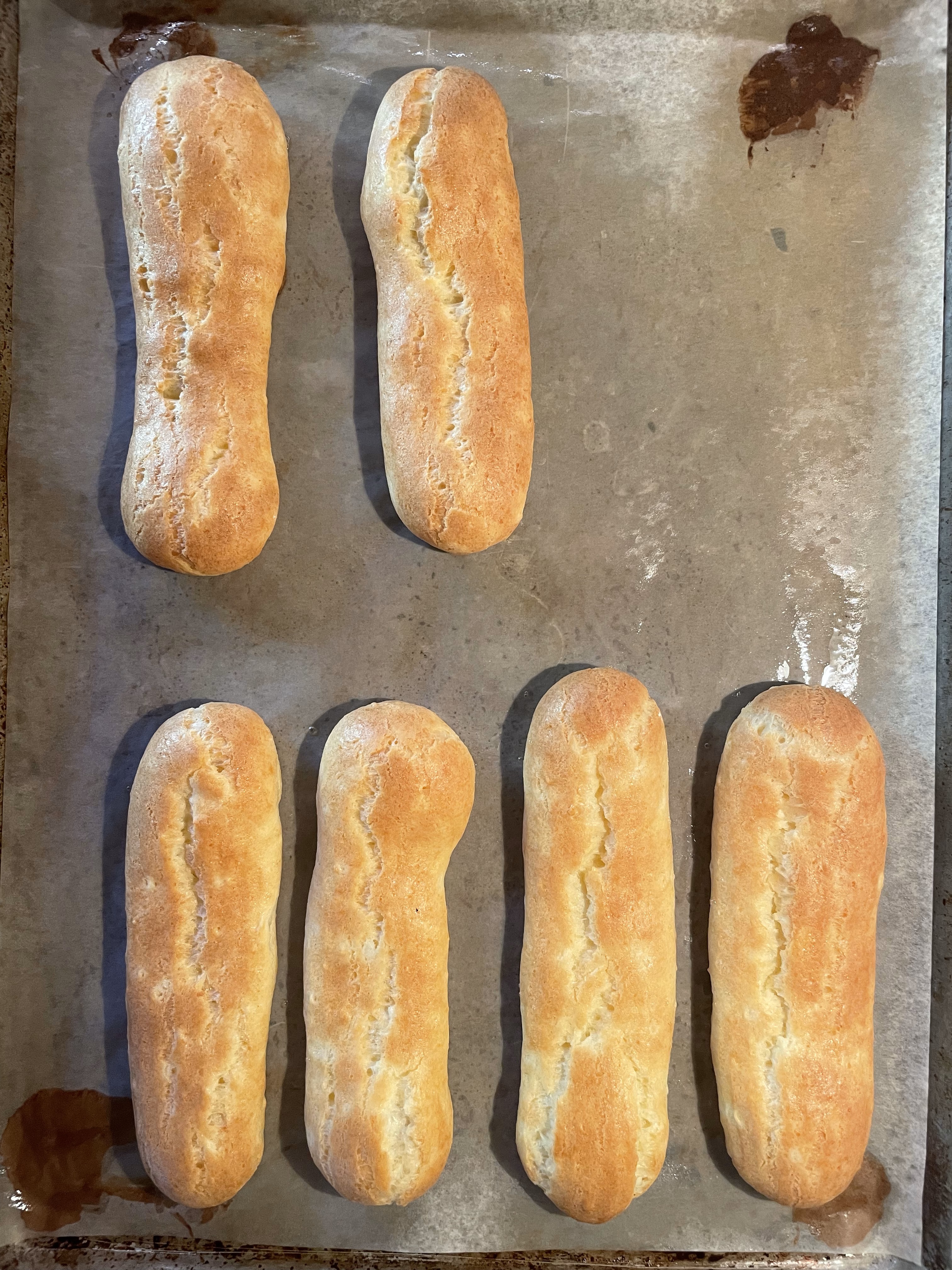 Delicious eclairs. My piping needs a little work, but the choux puffs well!