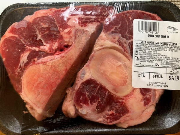 - 3 pounds beef knuckle, marrow or other soup bones