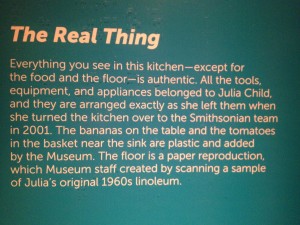 In November 2012, the American History Museum at the Smithsonian opened a new (permanent) and really interesting exhibit, titled: Food: Transforming America's Table, 1950-2000. Julia Child's kitchen, which is worth seeing in and of itself, is at the center of this exhibit. It's not a huge exhibit, but it's really interesting and well done. (On a side note, I happen to be friends through the Kitchen & Bath Industry, with the person who did the work with Julia Child to ensure her kitchen was installed at the Smithsonian, just as it was at her house in MA. It's been fun over the years, to hear his stories regarding this experience and how he became friends with her during through it.)