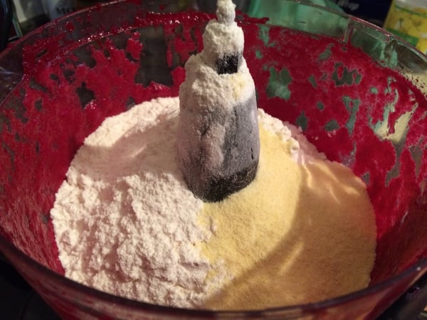 Add the flour and semolina and blend together until the dough begins to form into a ball in the food processor. If the dough is still really sticky, add more flour.