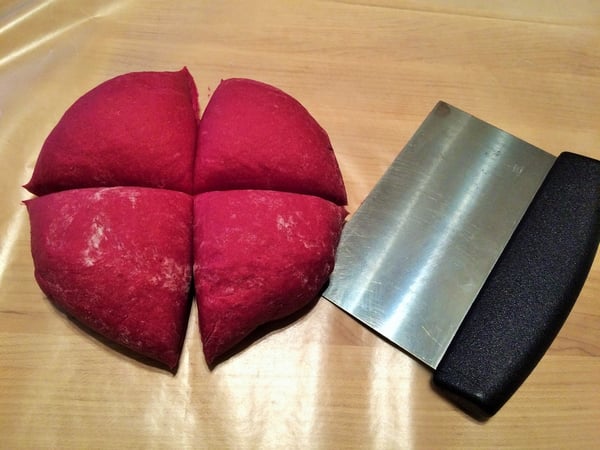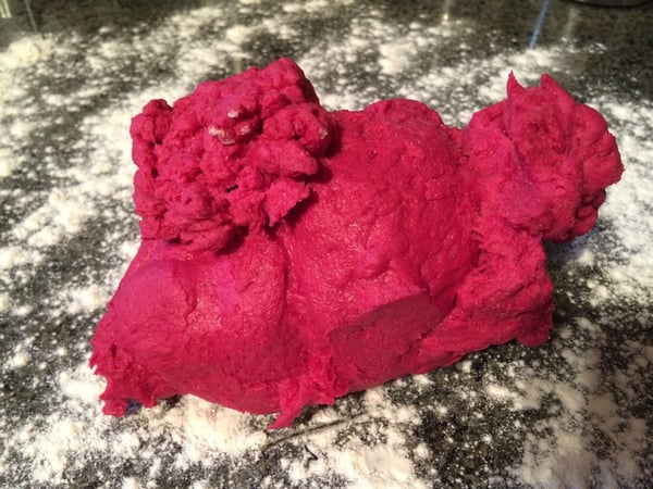 Turn the dough out onto a counter that is dusted with flour and knead for a minute.
