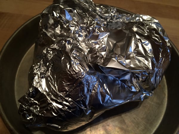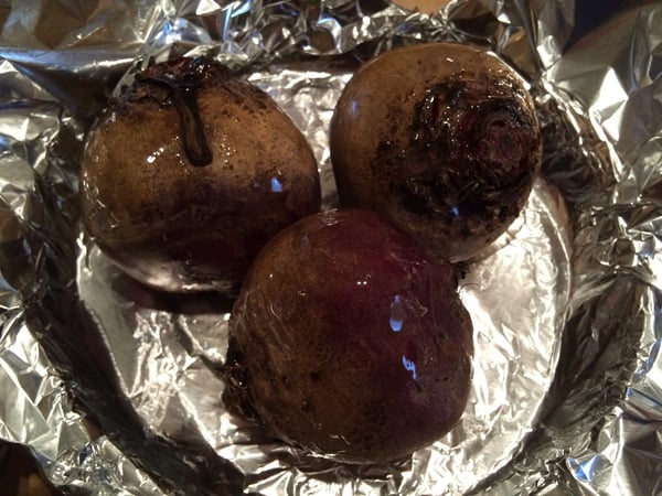 Preheat the oven to 450ºF. Place the washed beets on a sheet of foil set within a small baking dish.