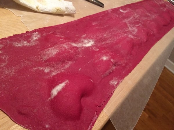 Puree the beets until smooth, adding a touch of canola oil, if needed. The beets lend a really gorgeous, bright hue of pink to the pasta that is perfectly representative of the Valentine’s Day holiday.