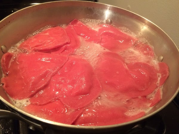 Drop the ravioli in the salted boiling water and cook for approximately 3-4 minutes.