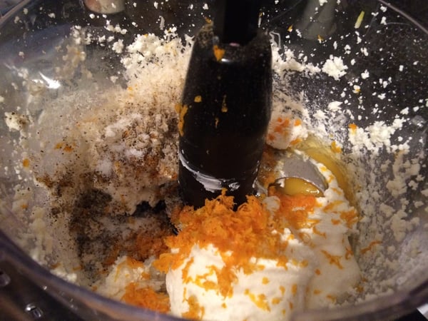 Lastly, add the ricotta cheese, parmigiano-reggiano, egg, zest of one orange, and salt and pepper to taste.