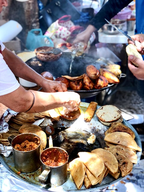 Church enchiladas being prepared on Sunday outside of the Parroquia