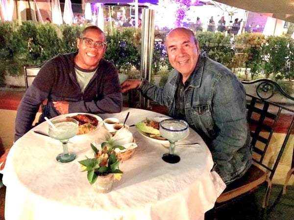 Me and Fernando enjoying a margarita on the rooftop terrace at La Posadita