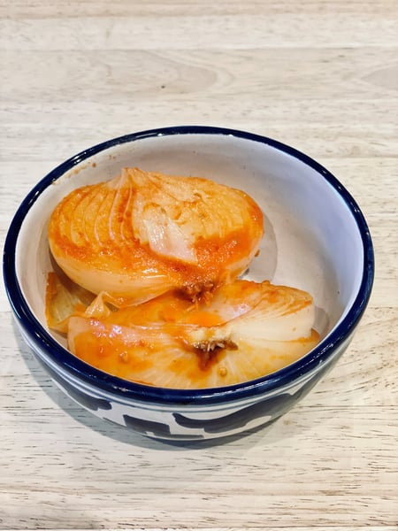 In the original recipe, the instructions were to discard the onion after it’s done its job of adding a luscious, rich sweet note to the sauce. Several other recipes suggested holding on to the onion and using it in other recipes, or dicing it up afterwards to add to the sauce. I loved Kristen Miglore's suggestion for the onion. She suggested dicing it up and using it as topping for hot dogs. I put my onion aside to use in a future recipe for a friend’s dinner party where I’ve been asked to bring a side dish. The dinner party is going to be a Schnitzelfest and I’m going to make Sweet and Sour German Green Beans with Bacon and Onion. I’m thinking the onion I saved would be perfect for the dish, when roughly chopped. But I also think that the reserved onion would be perfect chopped up and added to a chili recipe.