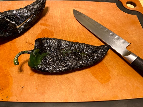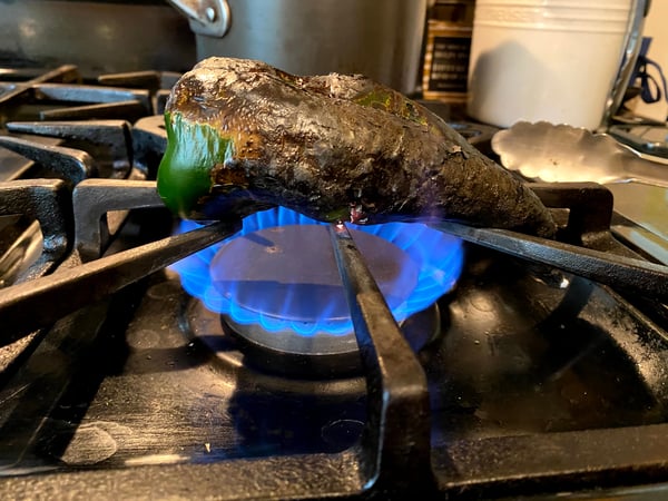 While the corn was grilling, I started roasting poblano peppers right over my burner.