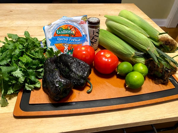 Grilled Corn Salad with Tomatoes, Roasted Poblano Peppers and Queso Fresco