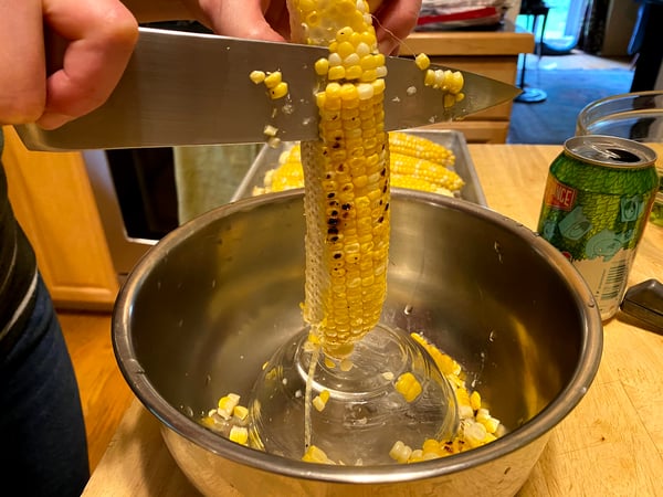 - Once cool to the touch, cut the kernels off the cobs and place in a serving bowl.