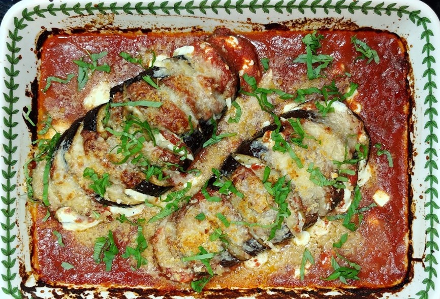 So, I did what we all do when we’re looking for the perfect answer to our cravings: I scouted the internet. Well, I can tell you, I’m certainly not the first person to consider baking my eggplant parmigiana, that’s for sure! I played about with a number of different ideas and approaches and finally came up with something that my husband and I really enjoy. At about 15 minutes, prep time is super-quick. Your oven finishes nearly everything else for you and the result is not only delicious, but it looks amazing! As an added bonus, leftovers keep well in the fridge and reheat beautifully.
