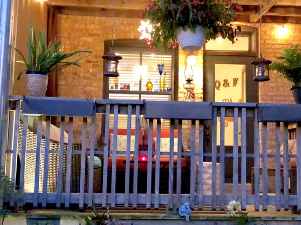 We recently made a few design changes to our deck. We hung a roller shade on one side of the porch to block out the sun and shield the porch from the rain, and to also give the porch more of a private feel. We replaced old chairs with a couple of really comfortable patio sofas. Next, we added some new candles, strings of outdoor lights, flowering hanging plants and a new outdoor rug. It turned out that by getting rid of some things and adding a few others, we actually simplified the space's use.