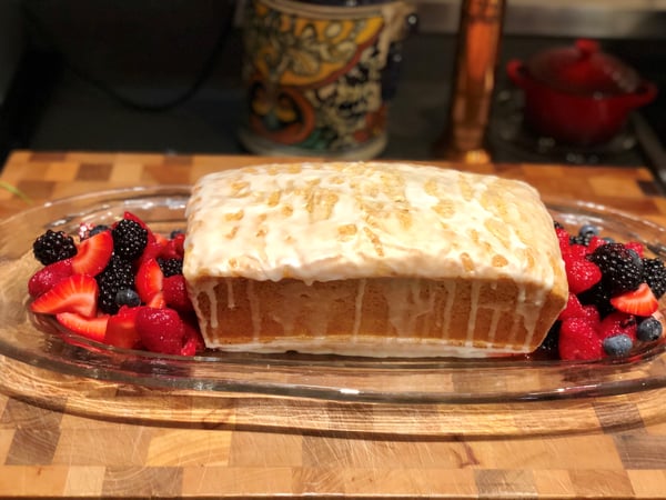 I also wanted to keep dessert simple so I made a sour cream, lemon and cardamom-spiced pound cake. I served that with fresh berries macerated in limoncello to add to the lemon flavor of the cake.