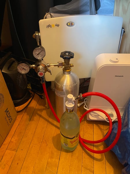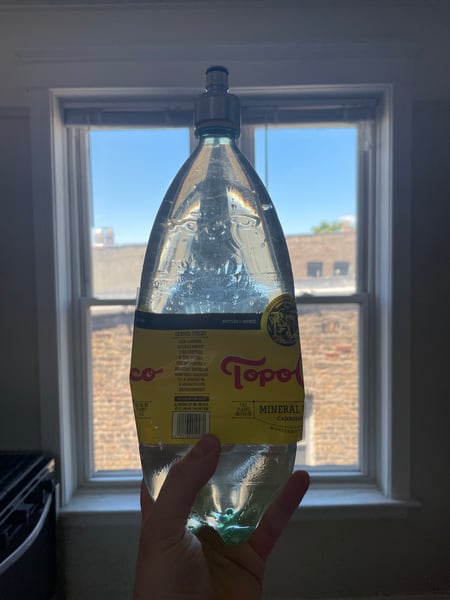 I circled back to the carbonation project, grabbed my chilled water, put on the carbonator cap, squeezed out all the air, and juiced it up with CO2 to make the club seltzer I needed to finish my mojito.