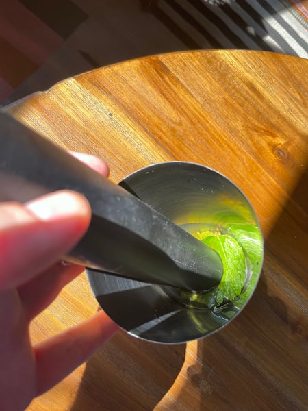 I have to harvest the herbs even if I don’t have a plan to use them in order to keep them growing properly. At this point I’m not sure what I want to do with the mint I clipped, until it dawns on me that I can put mint in cocktails. I often say that cooking at home is best done with a drink in hand, otherwise you might mistake it for a chore.