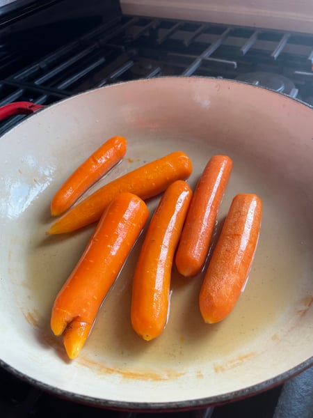 When the carrots were finished cooking I unwrapped the chicken and moved the chestnut mushroom to a warm spot above to heat to hold.