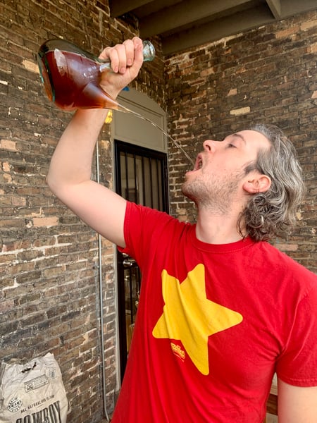 I took a break to decant the pink wine into the porron, then decant it from the porron into my mouth.