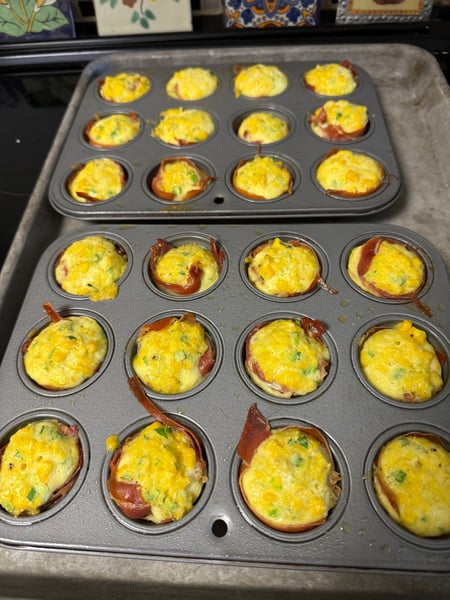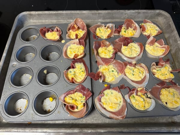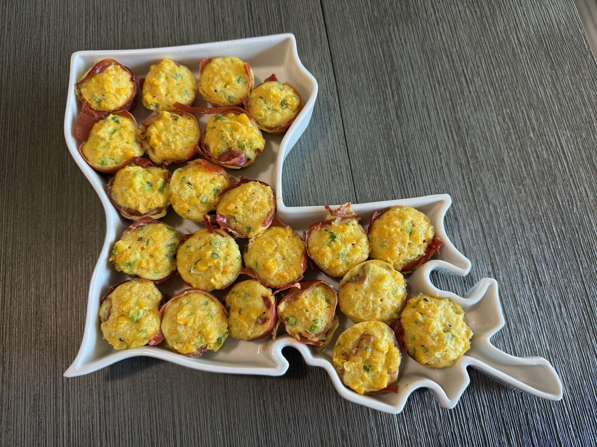 9. Cool in pans until the cups can be easily removed from the pans (about 5 minutes) and plate. You can garnish with fresh basil at this point. I opted to skip that since I liked the way they looked in my fun Louisiana serving dish (that's where I'm from).