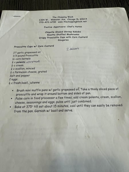If you got printed recipes for classes, they were more of an outline than a precise guide. Multiple chefs contributed their own recipes, so consistency wasn't always a priority. Steps could be out of order, serving sizes were often missing, and if we ran out of an ingredient (which happened often), chefs improvised on the spot. Students would copiously jot down notes to capture what was happening in the kitchen.