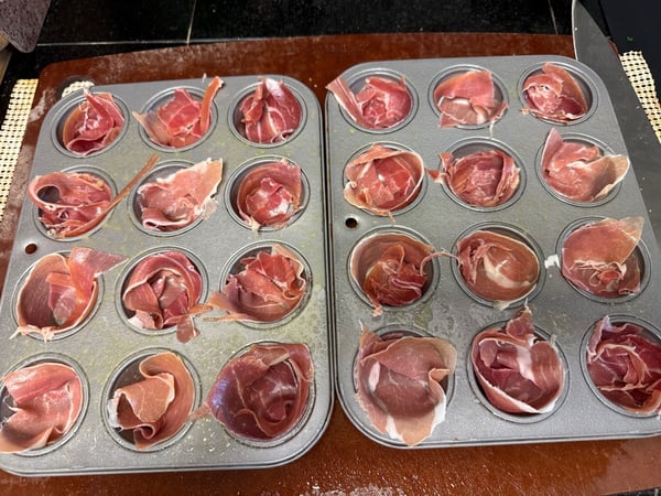 4. Wrap one piece around the bottom and sides of the muffin tins.