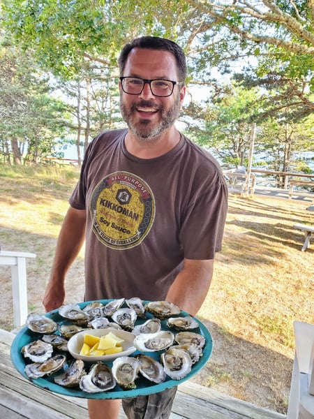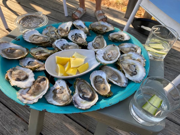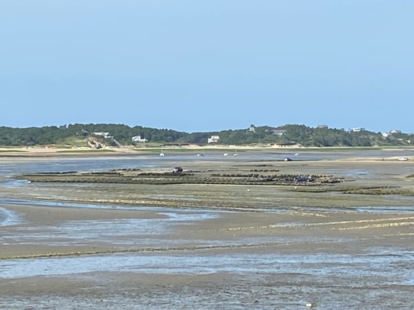 We rented a house in Wellfleet overlooking Blackfish Creek, and when the tide was out we were able to see that a whole oyster farming operation was revealed. While the water was at its lowest point, pickup trucks would drive right out to the contraptions, farm the oysters, and then return to land when the tide started to come back in. Raising oysters is very common business all up and down the Cape, but the specimens from the Wellfleet area are especially famous… and for good reason - they’re amazing!