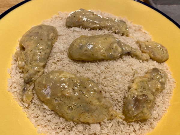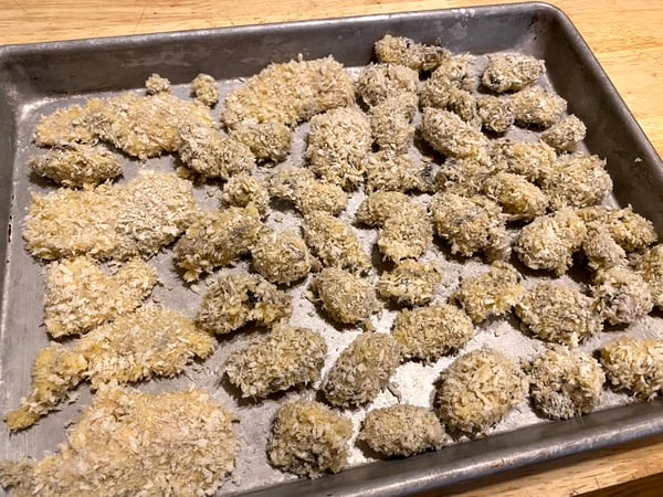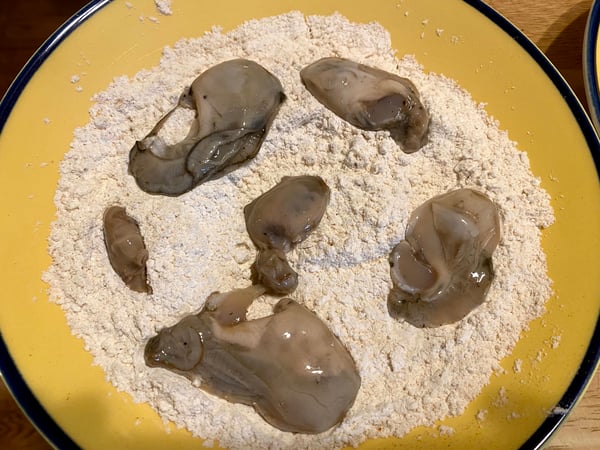 I dredged the oysters through the flour first, then the egg wash and finally the panko breadcrumbs.