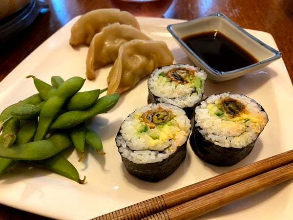 I served the maki rolls with pickled ginger and wasabi along with a side of dumplings and edamame. It was such a delicious feast, and it was so extra special because our East Coast adventure was the inspiration for our menu.