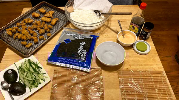 Since I wanted to keep the overall theme centered around seafood, I came to the conclusion that crispy fried oyster maki rolls was the obvious choice! Because I decided to make the fried oyster maki after we got back to the Chicagoland area, I wasn’t able to get my hands on Wellfleet oysters, but I did find some Blue Point oysters at my local grocery store, which are harvested in the Long Island Sound.