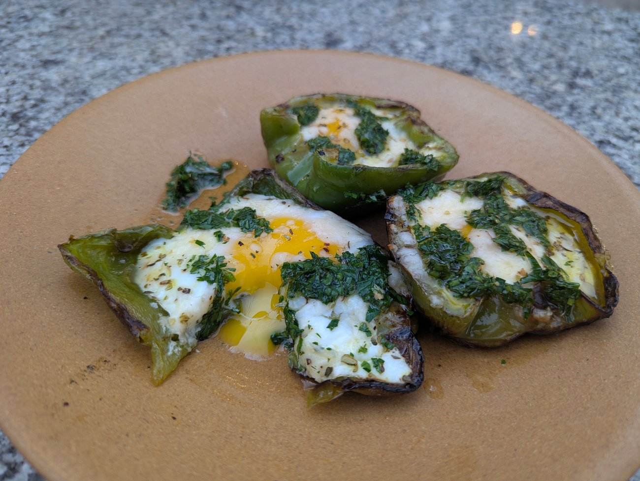 5. Cook the filling: Continue to cook the peppers over indirect heat, covered, for another 10-15 minutes. The cooking time will vary depending on your grill and the heat of your coals. The goal is to cook the egg to a soft-set consistency and melt the cheese to a gooey perfection.