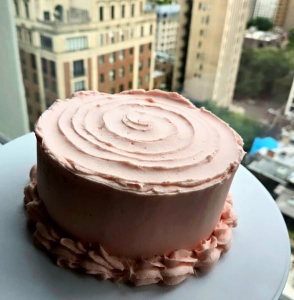 You want the buttercream to have crusted a bit, but not for it to harden completely. If it’s too soft, the paper towel will stick to the buttercream while, if it’s too hard, pressing on the paper towel would have little-to-no smoothing effect. Here is a video of smoothing the buttercream using a Viva paper towel and a fondant smoother – or, as my husband calls it, a “trowel”! I did not speed this up because I wanted you to see how quick this process is in real time.