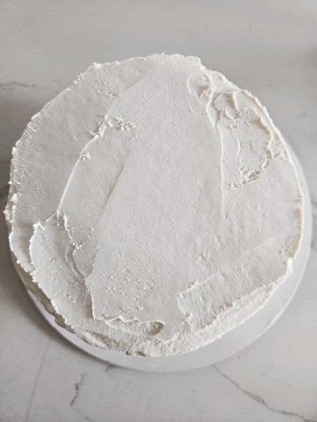 You can see the completely frosted 6” tier on the top right. While the camera angle makes it look somewhat asymmetrical, you’ll see in the final photo that it’s perfectly level across the top!