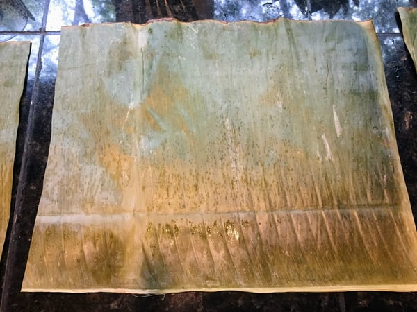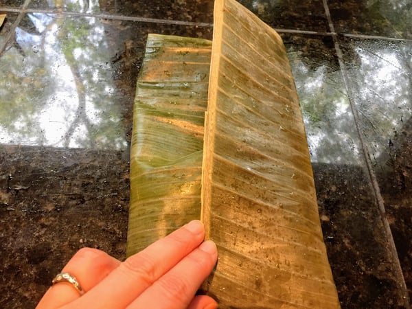 - Give your banana leaves at least 30 minutes to thaw before using them; place the extras back in the freezer.