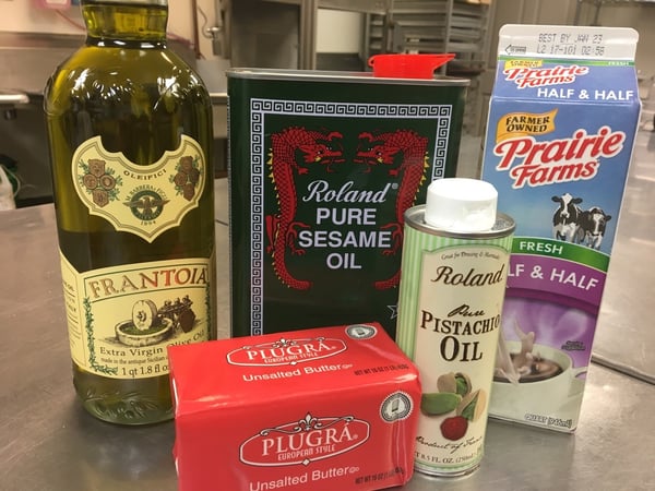 Acids are also detected strongly on our pallets. Their presence is usually easy to notice and impart good flavor, but can be a little overpowering at times. That's when we need to balance that mouth-puckering acidity with a fat. The use of fats also enhances flavor and texture.