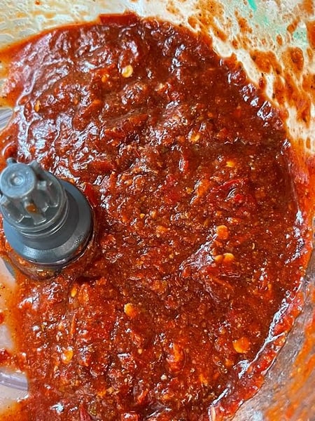 - Make sure all of the chiles get chopped up so scrape the sides a few times as you process the paste.