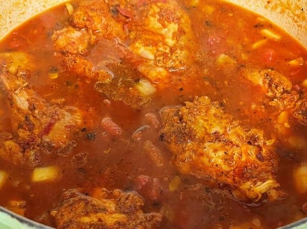 - Add the tomatoes and broth. If you would like to add more adobo sauce to the pot, this would be a good moment to do so.