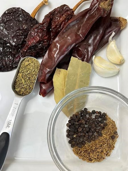 I asked one of the ladies who runs our awesome Mexican market here in LaPorte for her thoughts and was answered with the following: “Um, no, no, no.” She suggested that I make my marinade but add some tomatoes and onions. She felt that simmering in just the chilies and vinegar would be so strong that I may see a religious entity.