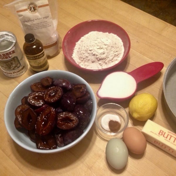 - Combine flour, baking powder and salt, stir well and set aside. Toss fruit well with granulated sugar and lemon juice and set aside. Combine the coarse sugar and cinnamon and set aside.