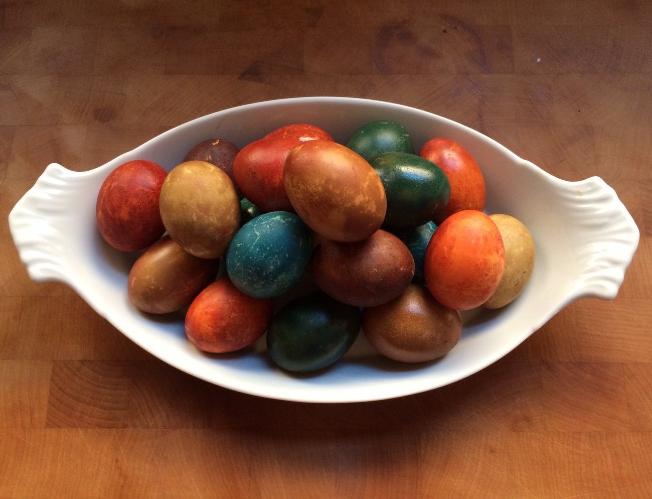 - Use both white and brown eggs, or any other colors you can find as a starting point. The dyes created different and beautiful hues on each, and I got twice as many colors for the same amount of work!