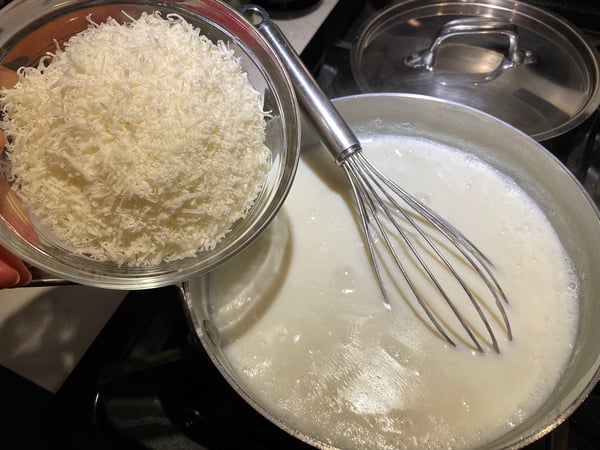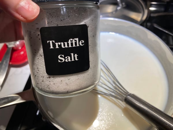 Once the sauce had reached a coating consistency, I removed it from the heat, whisked in grated Parmesan cheese and seasoned it with truffle salt and pepper, but any salt of your preference can be used.