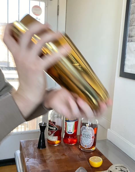 The paper plane was created by Attaboy bartender Sam Ross in 2008. It uses two different amari to create a nicely balanced, but still interestingly bitter and aromatic flavor profile. It's rounded out with lemon juice and uses bourbon as a base spirit (though I use rye here). Base spirit may be a bit of a misnomer in this instance though, because the paper plane uses equal measures of all its ingredients. I love a cocktail spec (that’s what fancy cocktail people call recipes) that uses equal measures because I can never remember the specs for cocktails that don’t. Coincidentally, the cocktail that most famously uses a 1:1:1 spec is the Negroni, the granddaddy of all amaro cocktails. Anyway, let's get into it.