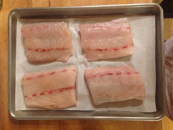 Sea bass, pre-sear