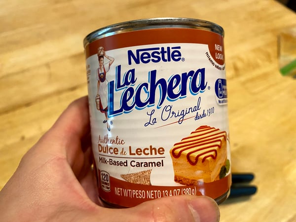 What is dulce de leche you ask? It’s a Latin America confection made by caramelizing sugar and milk. It’s thick right out of the can, and can be used as a spread or warmed up for a drizzly consistency. It’s excellent on ice cream or pancakes, too! And, it’s a great shortcut if you don’t have time to make your own caramel sauce.