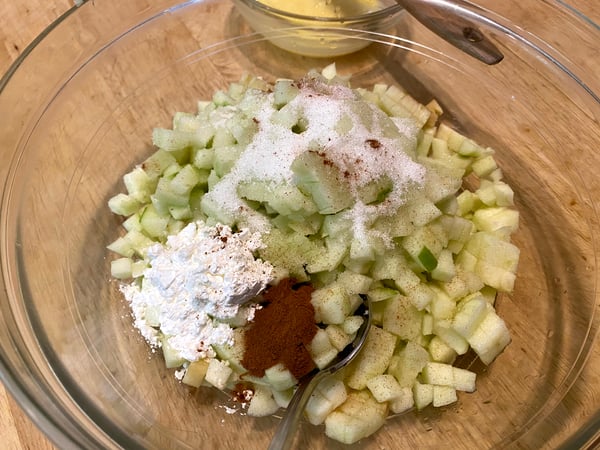 6. To prepare the filling mix together the apples, sugar, cornstarch, cinnamon, lemon juice and salt.