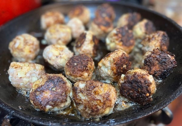 4. Add in the meatballs and allow them the brown on all sides, rotates every 3-4 minutes. You may have to work in batches.