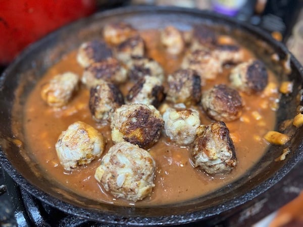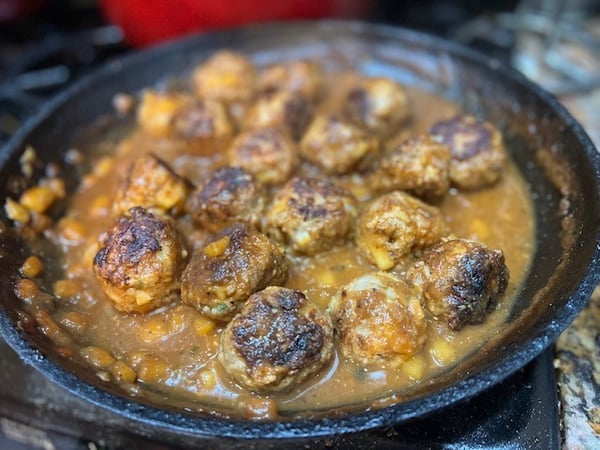 - Add the meatballs into the sauce and let cook for 15 minutes until they are glazed.