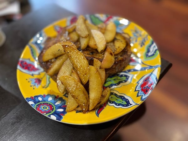We each wound up with about 24 apples so I’ve been incorporating apples into all sorts of sweet and savory dishes. Throughout the years, I’ve made some really delicious apple dishes including Apple Upside Down Cake, Apple Cider Donut Bundt Cake, Baked Apple Pancake, Apple Whiskey Bread, Hard Cider Cheese Soup with Apple Grilled Cheese, and Apple-Bacon-Caramel Croissant Bread Pudding.