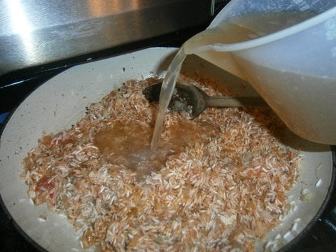 - Stir in the rice, and continue to cook, covered, until the rice has absorbed the liquid, about 18 minutes.
